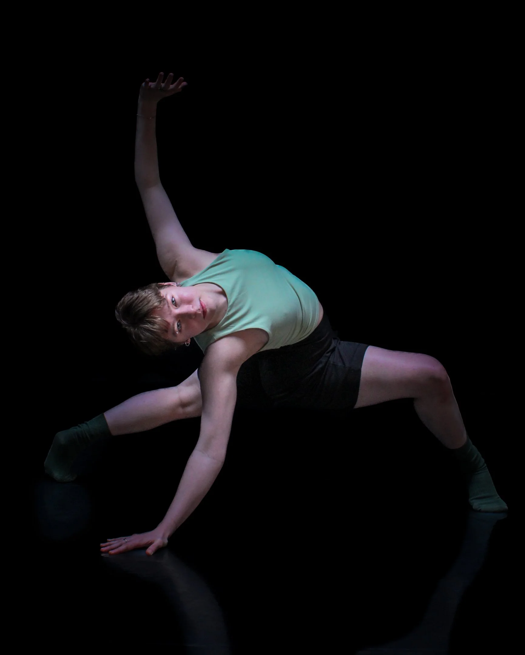 While studying at ACC, they worked with Sea Legs Dance, directed by Tikiri Shapiro, performing "Escape from Nightmareland" as a production, and "The Joy of a New Perspective" at Barnstorm Dance Festival. Additionally they have danced with Sea Legs as an ensemble improvisor for a music video and several in-person events for audio/visual artist Oddmanrush. They are currently based in Chicago, training and performing in the Visceral Dance Trainee Program, and joining Identity Performing Arts as an apprentice.